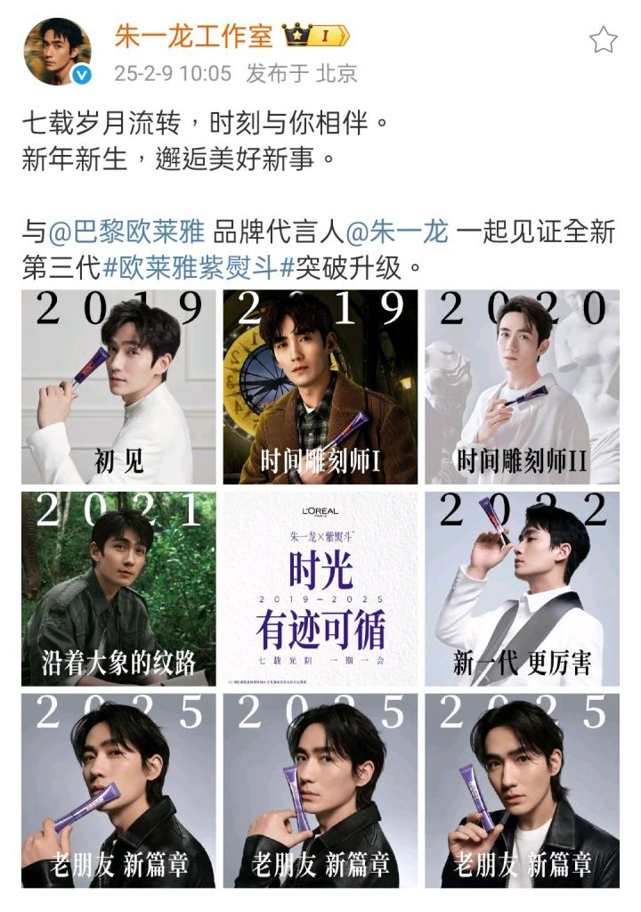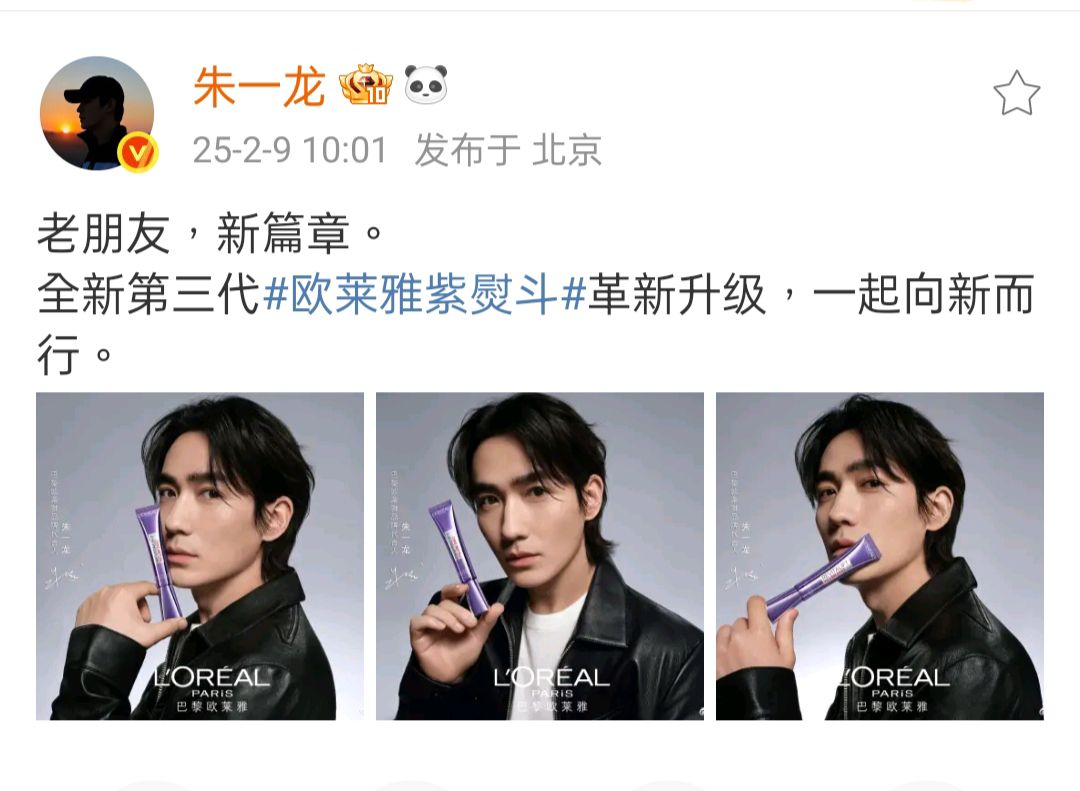 2月9日朱一龍代言L’Oréal第三代紫熨斗