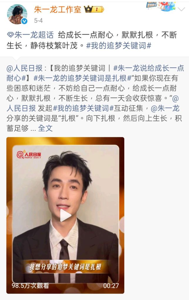 朱一龍微博